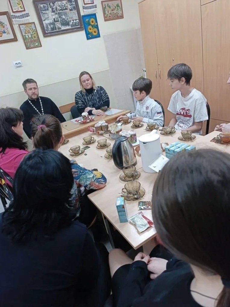 Отец Даниил поздравил всех со светлым праздником Пасхи, пожелал семьям крепости духа и веры в лучшее. В тёплой, доверительной обстановке он провёл беседу о значении праздника Воскресения Христова, о прощении и возможности начать новую жизнь.