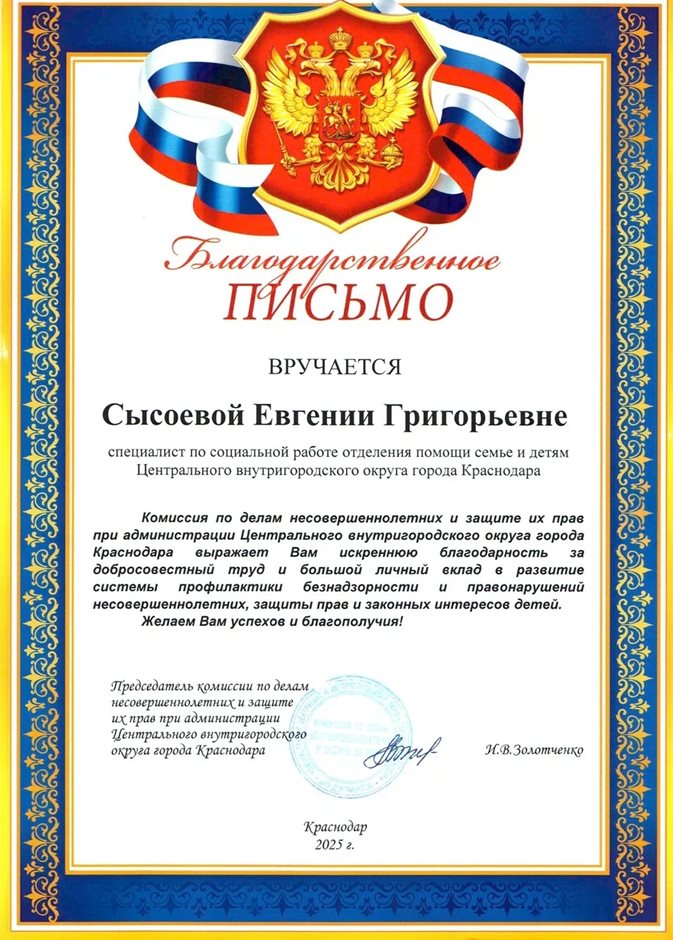 Сысоева Благодарность КДН