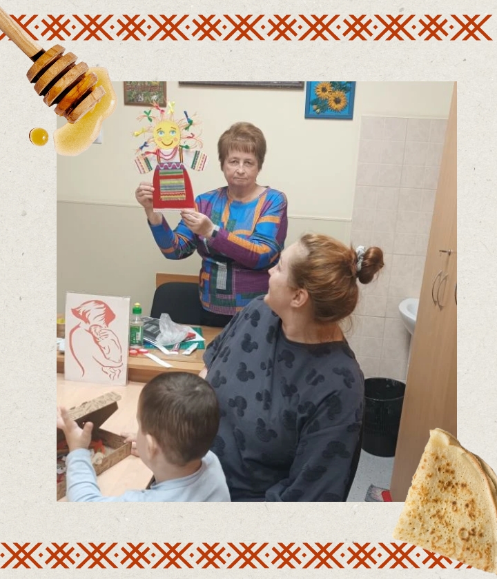 Для женщин и детей был организован мастер-класс по изготовлению куклы-Масленицы. Особое внимание уделили главному угощению праздника — блинам, которые нам предоставили сотрудники филиала ГАУ КК «ЦОП УСЗН» по Карасунскому и Центральному округам Краснодара, а также сотрудники Кризисного центра.