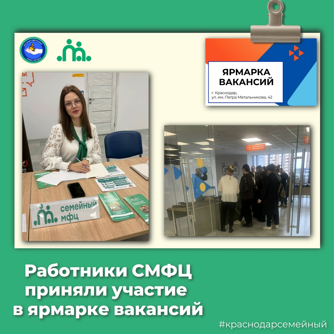 Специалисты отделения «Семейный многофункциональный центр» приняли участие в ярмарке вакансийМероприятие проходило в Центре занятости населения по Прикубанскому округу города Краснодара по адресу: ул. Петра Метальникова, 42.