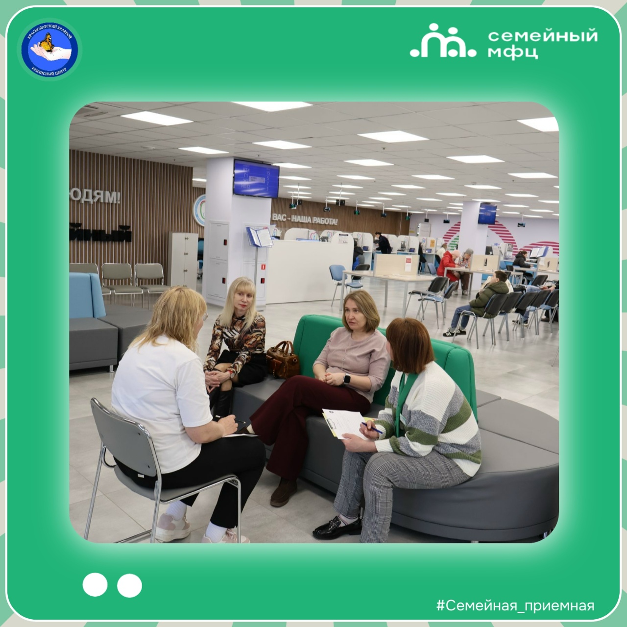 Социальный фонд России провел консультирование посетителей отделения Семейный многофункциональный центр (СМФЦ) Краснодарского кризисного центра по адресу: г. Краснодар, ул. имени Петра Метальникова, д. 42. Мероприятие состоялось 27 февраля в рамках работы социального сервиса «Семейная приёмная».